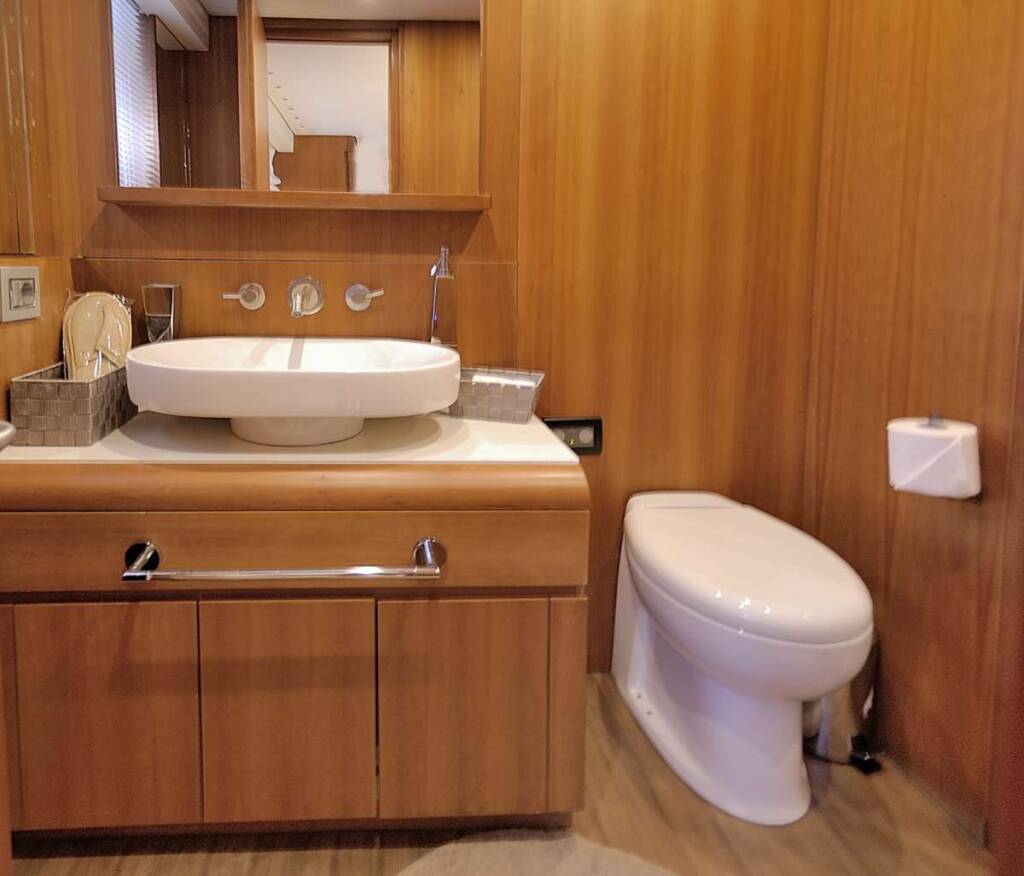 In the 5 cabins version, the Master cabin is divided to 2 Double cabins or to 2 Single cabins or to 1 Single + 1 Double cabin. Each cabin has an en suite bathroom and independent entrance.