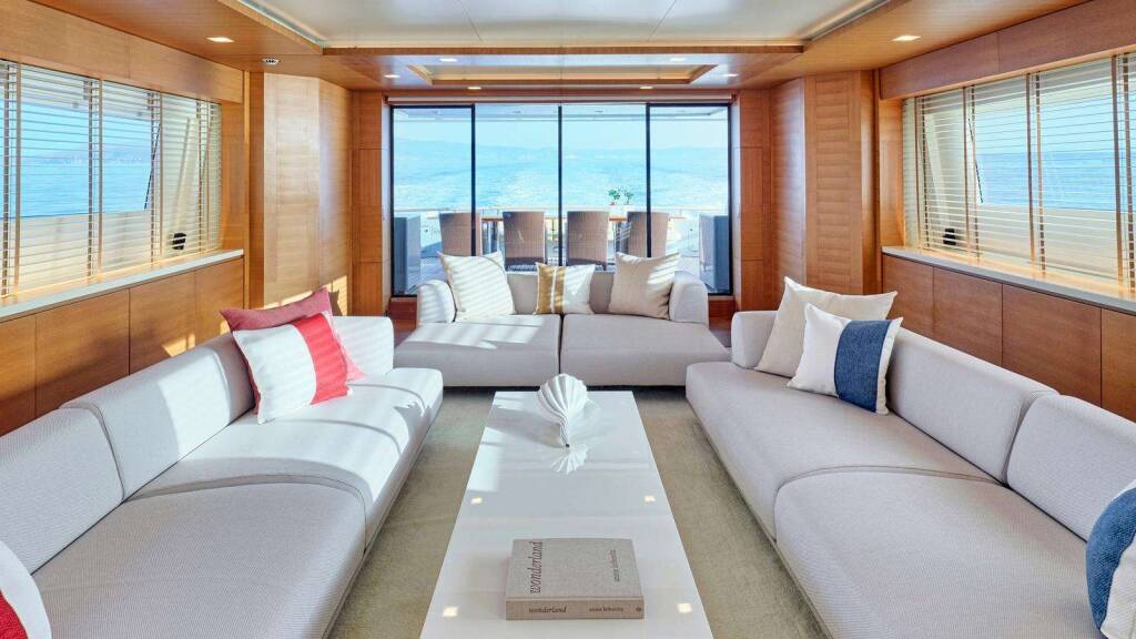 Stabilizers underway, bow thruster, stern thruster, 2 watermakers, 3 icemakers, BBQ, safe box in Master and VIP cabins, laundry facilities, alarm and fire detectors system and closed circuit television system. Air-conditioning throughout. HeartSine Defibrillators.