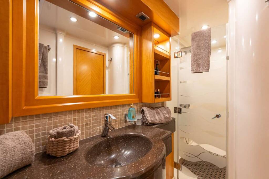 Accommodation: 1 master stateroom, 1 VIP stateroom, 2 twin staterooms all with ensuite heads, all on lower deck