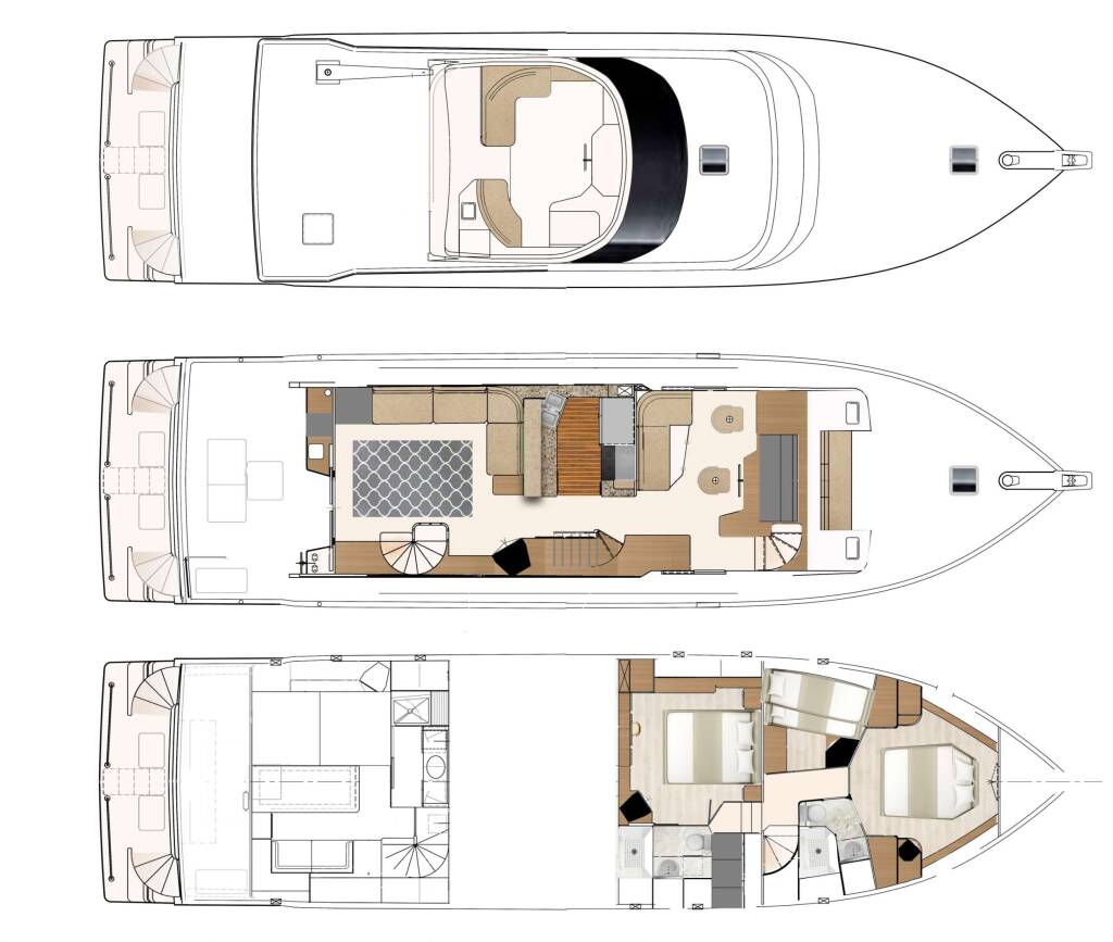 Crew quarters are located aft by the walk-in engine room to allow for privacy.