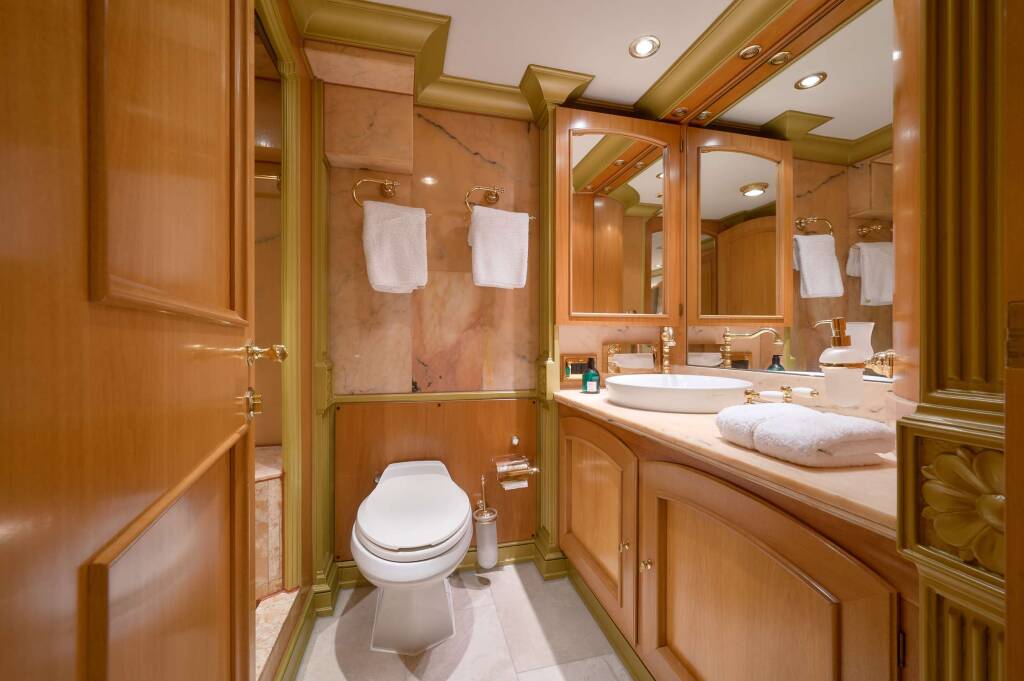 Accommodation: 115' Classic Benetti's interior configuration has been designed to comfortably accommodate up to 8 guests overnight in 4 cabins, comprising a master suite (bed 200x170) , and 3 VIP stateroom (bed 200x180). one of the cabins have pullman. She is also capable of carrying 6 crew onboard in 4 cabins to ensure a relaxed luxury yacht experience.