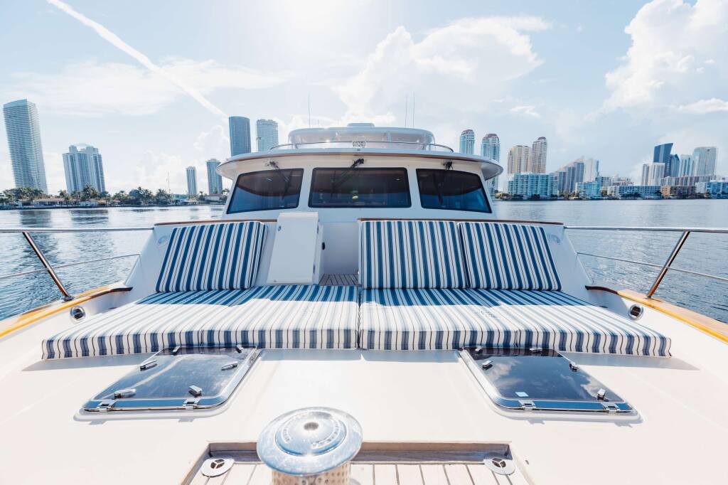 Accommodation: VIRGINIA SEA’s interior configuration has been designed to comfortably accommodate up to 10 guests in 4 well-appointed ensuite staterooms. The full-beam master stateroom features a king-size bed, while the VIP stateroom offers a king bed and twin bunks. Two additional twin staterooms ensure plenty of space for guests, with all staterooms showcasing luxurious designer fabrics, along with teak and ebony satin finish woodwork. She is also capable of accommodating up to 4 crew onboard in a separate cabin.