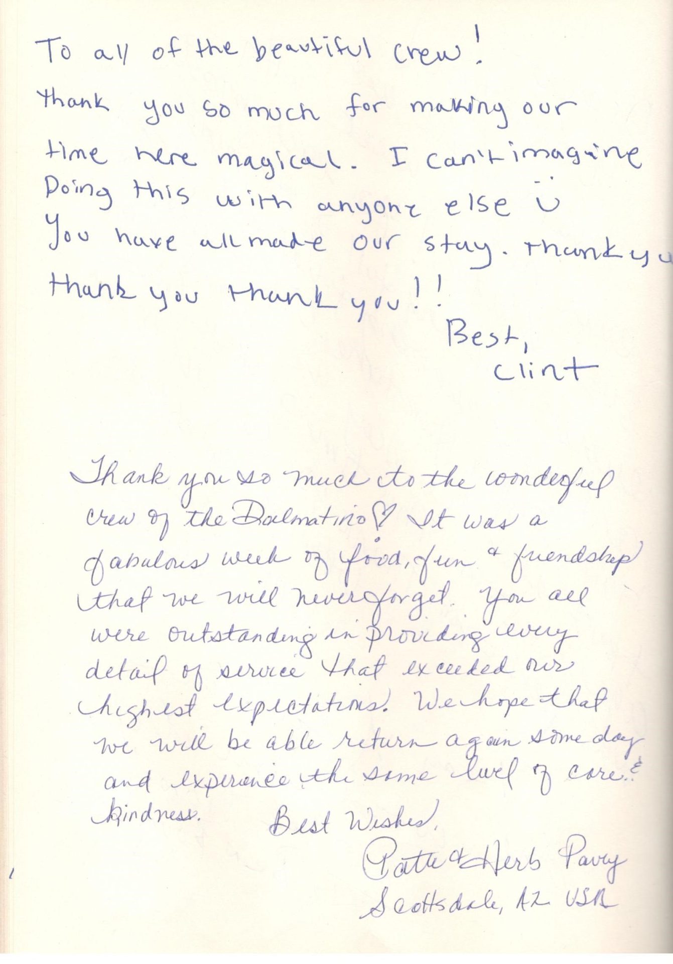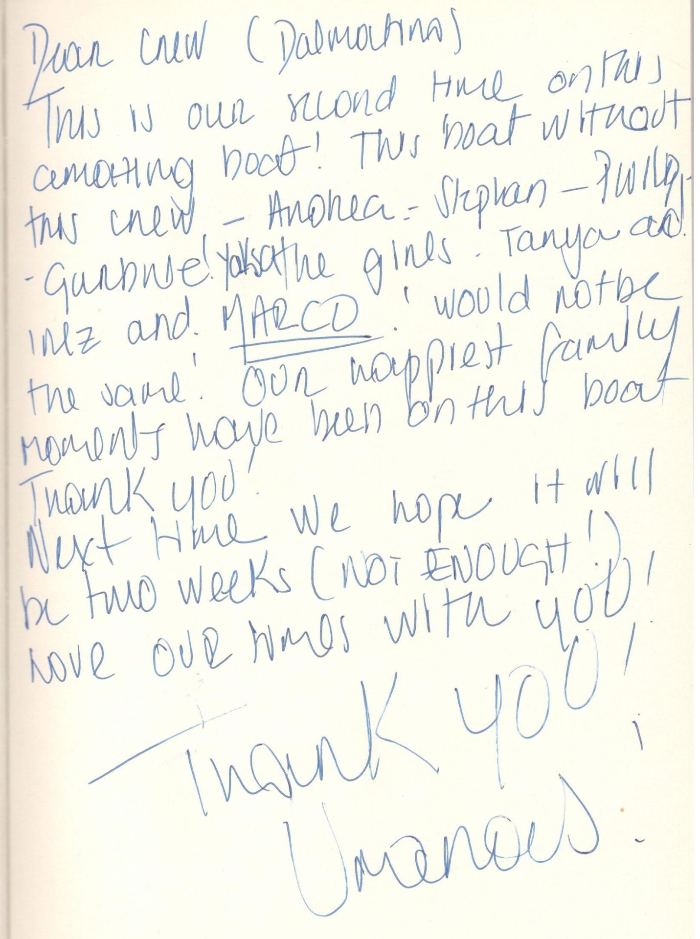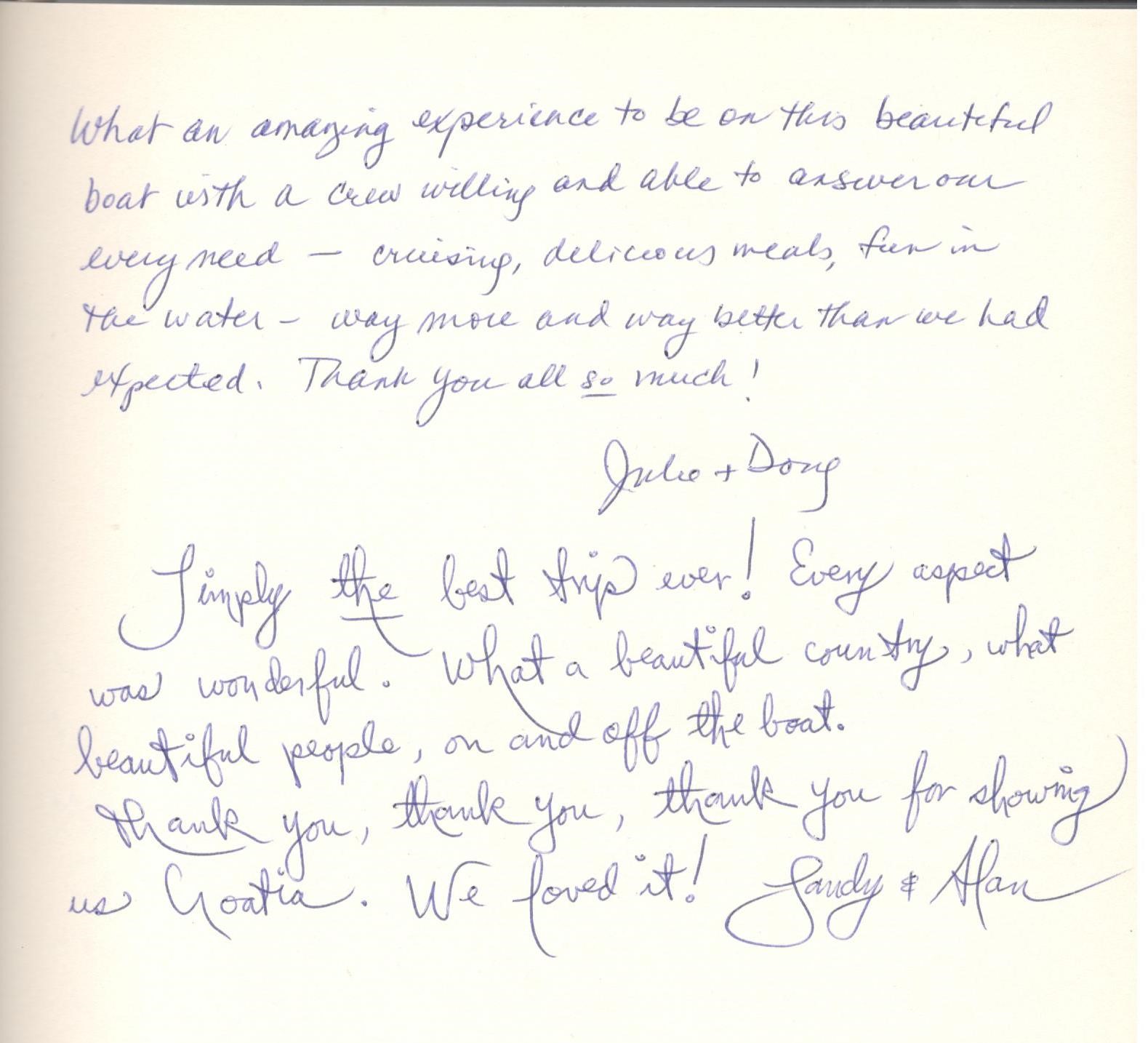 - APA (Advance Provisioning Allowance): 25% of charter fee paid with the balance for covering running costs during the charter: port and marina fee, jet ski, national park entrances, custom fees and charter licenses if chartered outside of Croatia, food and drinks options, and anything else that guests might need while on charter. A strict set of accounts is held by the captain throughout the charter and any funds not spent are refunded to the client in full.